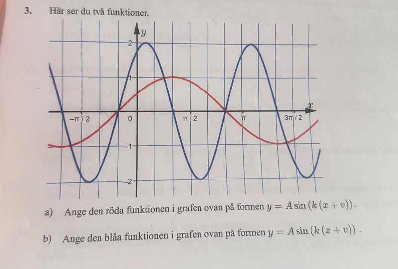 jag vet att amplituden är 1 men jag vet inte hur jag ska bestämma k och v.