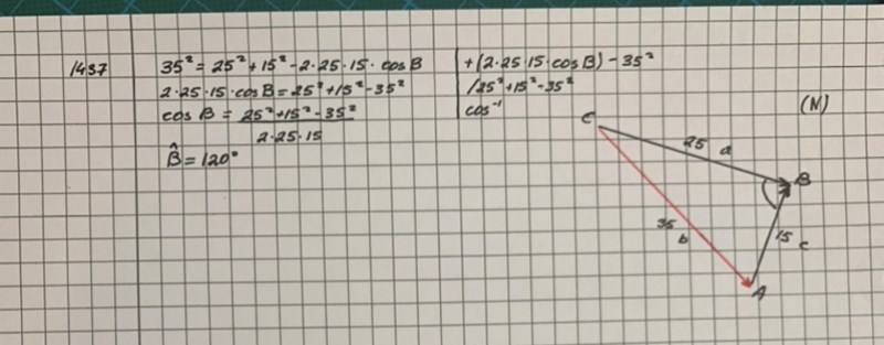 Det står i facit att svaret är 60, jag antar att de fick det svaret genom 180-120. Men jag undrar varför man borde göra så jag förstår att det kan bli två svar när det gäller sin, men nu är det ju cos? Tacksam för förklaring