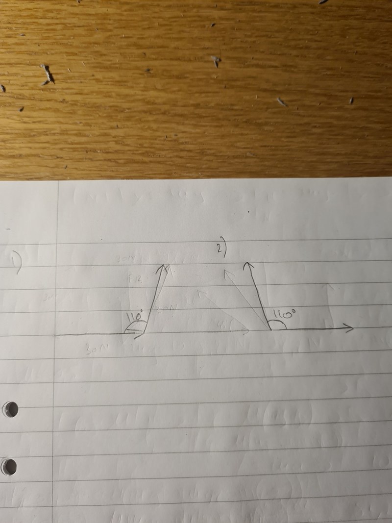 Du har ritat två krafter som bildar vinkeln 70 grader, och uppgiften gäller två krafter som bildar vinkeln 110 grader.
