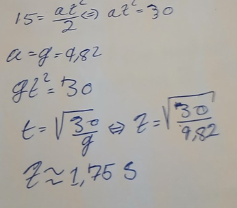 Det tar den första kulan ungefär 1,75 sekunder att falla 15 meter. Se det jag ringat in med grönt och notera att jag skriver 1,75. Avrunda korrekt om du måste avrunda.