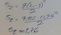 Nu behöver du använda den igen för att beräkna s2, alltså hur långt kula #2 har fallit. Den har inte fallit lika länge som kula #1, utan t2=t1-1 sekunder.