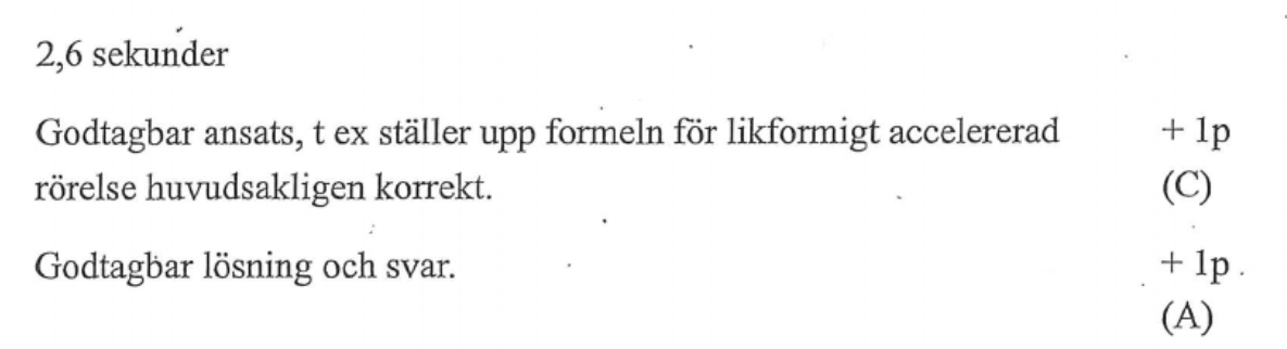 Sedan räknar du ut t1≈1,75 s, men det skadar inte att skriva ut enheter på vägen.