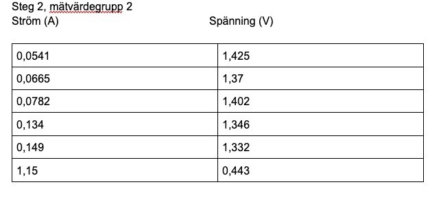 Jag har alltså bestämt inre resistans för grupp 1 utifrån en graf som jag ritat, och EMS. Jag har gjort samma för grupp 2, men vad gör jag sen? Ska jag kanske kombinera båda till en graf trots allt?