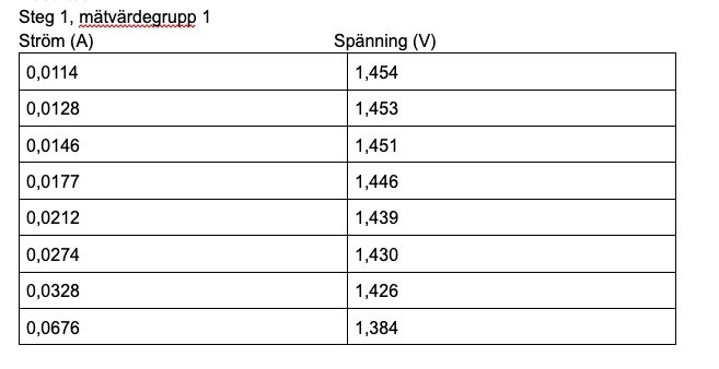 Sedan undrar jag om EMS, i steg 1 blev det 1,4676 V och i steg 2 1,4601 V. Batteriet är ju 1,5 V. Varför blev det lägre? Eller är det kanske bara en fråga om värdesiffror?