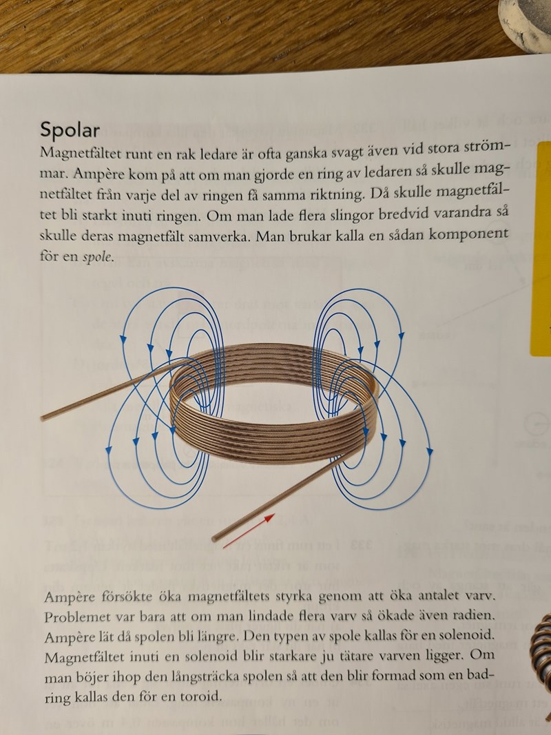 Partykoalan skrev:I bilden nedan står det i exemplet att Ampere försökte öka magnetfältets styrka genom att öka antalet varv på en platt spole. Det står även i texten att om antalet varv ökade så ökade även radien.