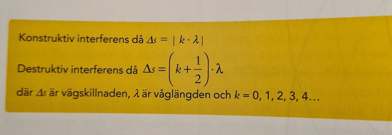 Jag har utvecklat båda formlerna och kommit fram till att skillnaden är att halva våglängden subtraheras från ett helt antal våglängder i den ena formeln, medan i den andra formeln adderas halva våglängdern till ett helt antal våglängder. Innebär det att båda formlerna för destruktiv interferens är korrekta och kan användas?