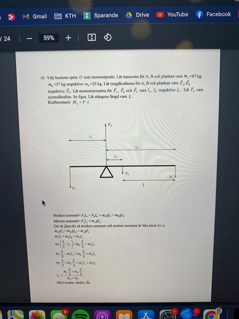 Två personer på en gungbräda (momentjämnvikt) - vart har jag räknat fel?