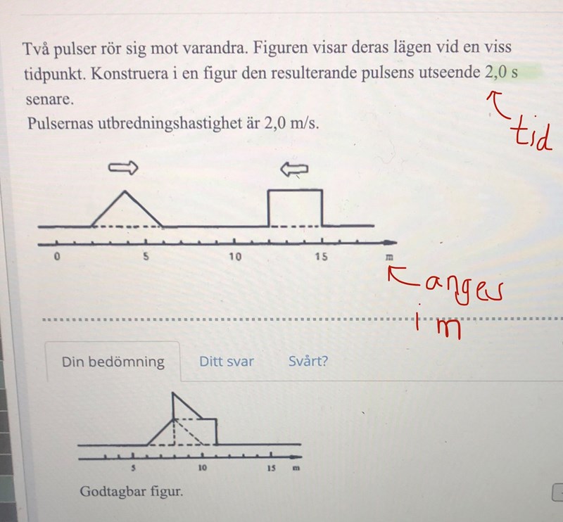 Eftersom du känner till pulsernas utbredningshastighet kan du enkelt beräkna hur långt de hunnit förflytta sig på 2 sekunder.