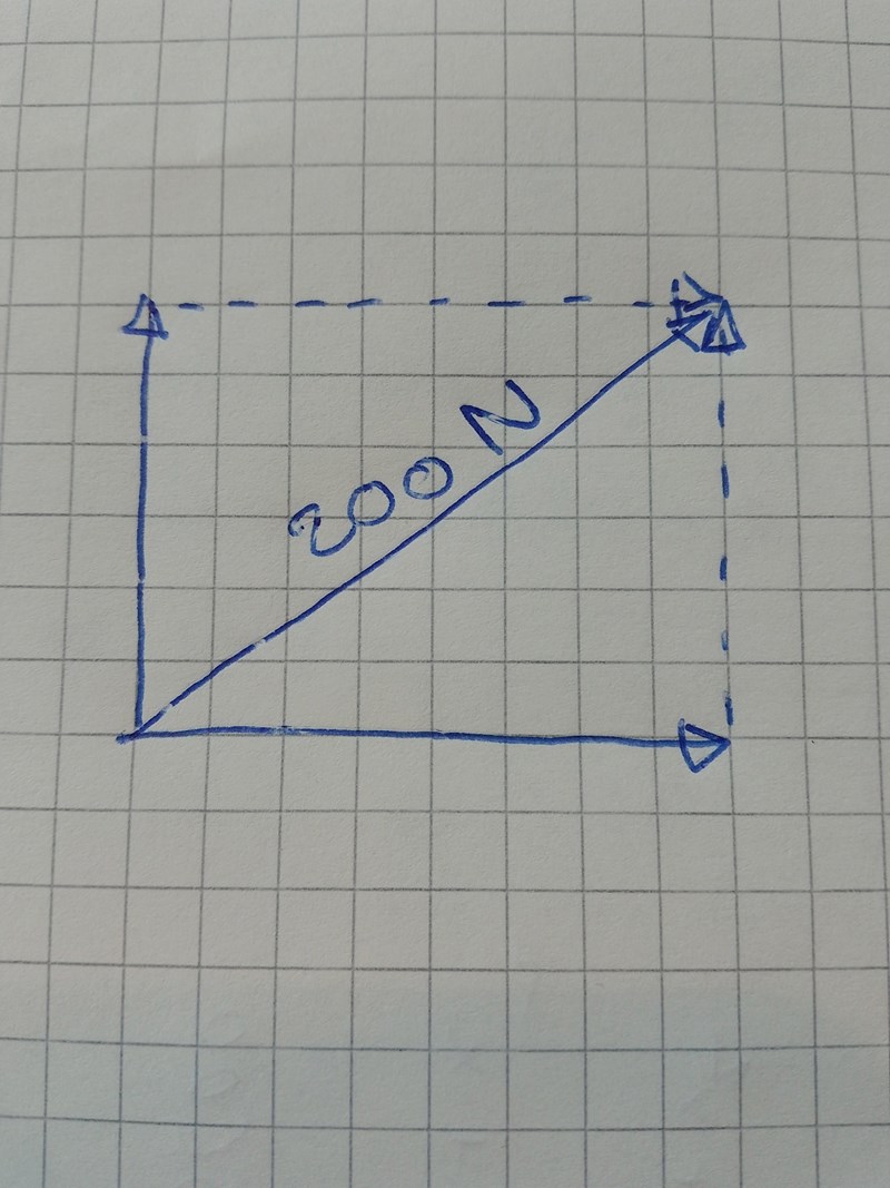 Fråga; En kraft av storlek 200 N ska delas upp i två rätvinkliga kompostanter. En av komposanterns skall ha storleken 160 N. Vilken storlek skall den andra komposanten ha?