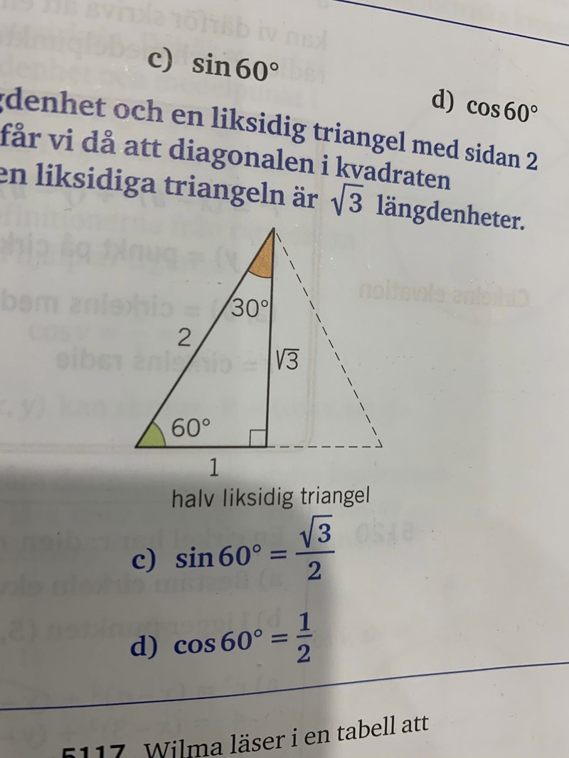 Vilken av kateterna ligger närmast vinkeln 60°