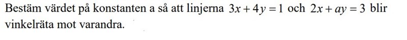 För uppgifter som liknar dessa, där man ska bestämma värdet på en variabel, i detta fall a, gör jag på följande sätt: