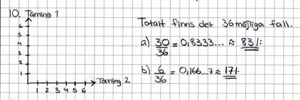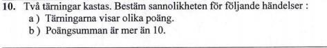 På b har du kanske räknat ut när poängsumman är större än eller lika med 10.