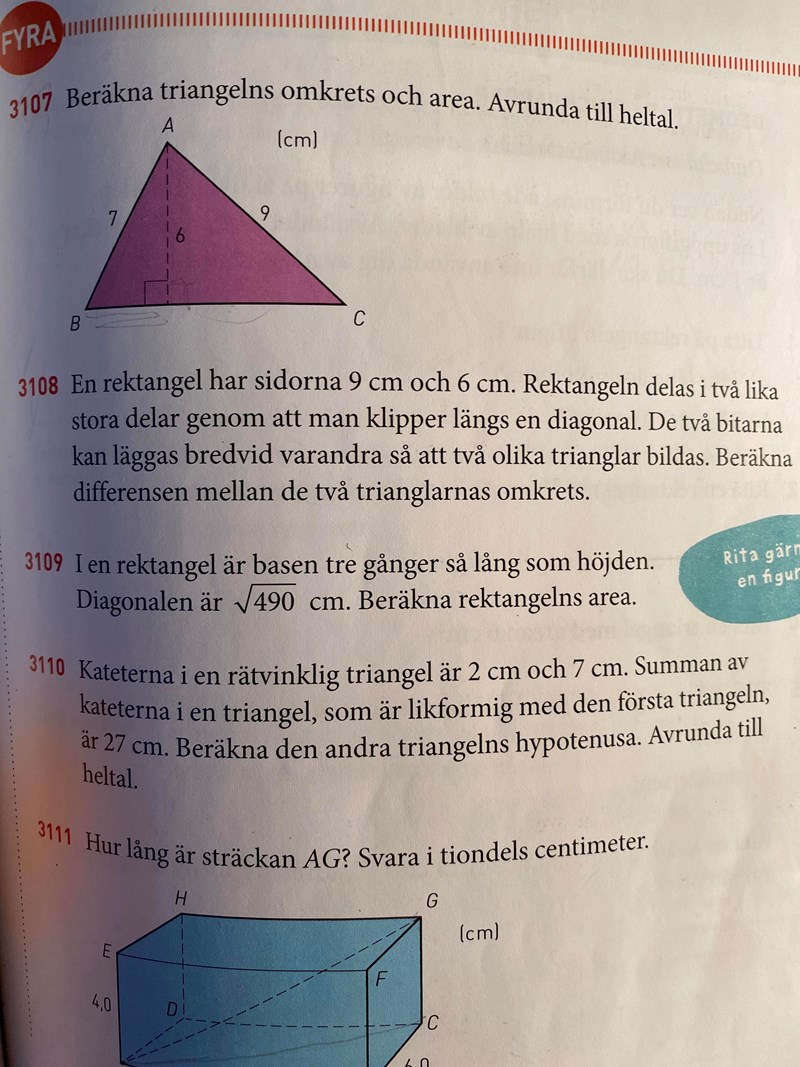 Hur ska jag räkna differensen av både triangelns omkrets om de är lika långa? Fråga 3108