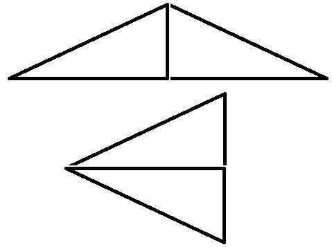 Klipp ut en rektangel som är 6*9 cm, klipp längs diagonalen och lägg ihop bitarna på två olika sätt: antingen är 9-cm-sidan höjden i mitten, eller också är 6-cm-sidan det. I det första fallet har man en triangel där en sida är 12 cm och två sidor är hypotenusan, i det andra fallet har man en sida som är 18 cm och två sidor som är hypotenusan. De båda trianglarna har inte lika lång omkrets.