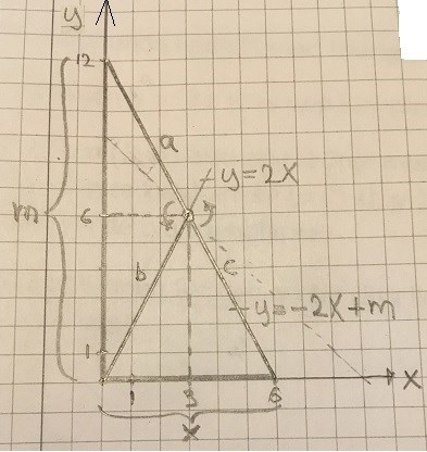 Som vi ser så kommer den nya räta linjens m-värde att direkt motsvara y-värdet. Därför är basen på triangeln mot y-axeln lika med m-värdet. Sidorna på den triangeln är namngivna med a och b.