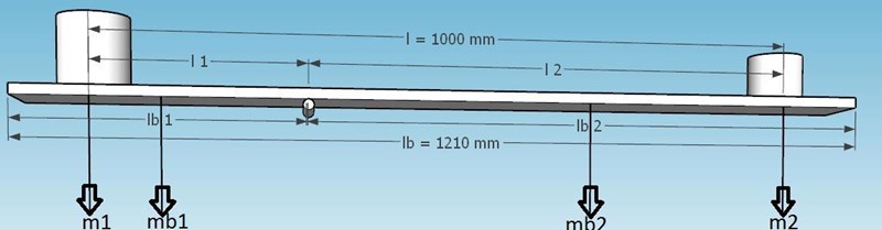 m1 * l1 + mb1 * 0,5* lb1 = m2 * l2 + mb2 * 0,5* lb2