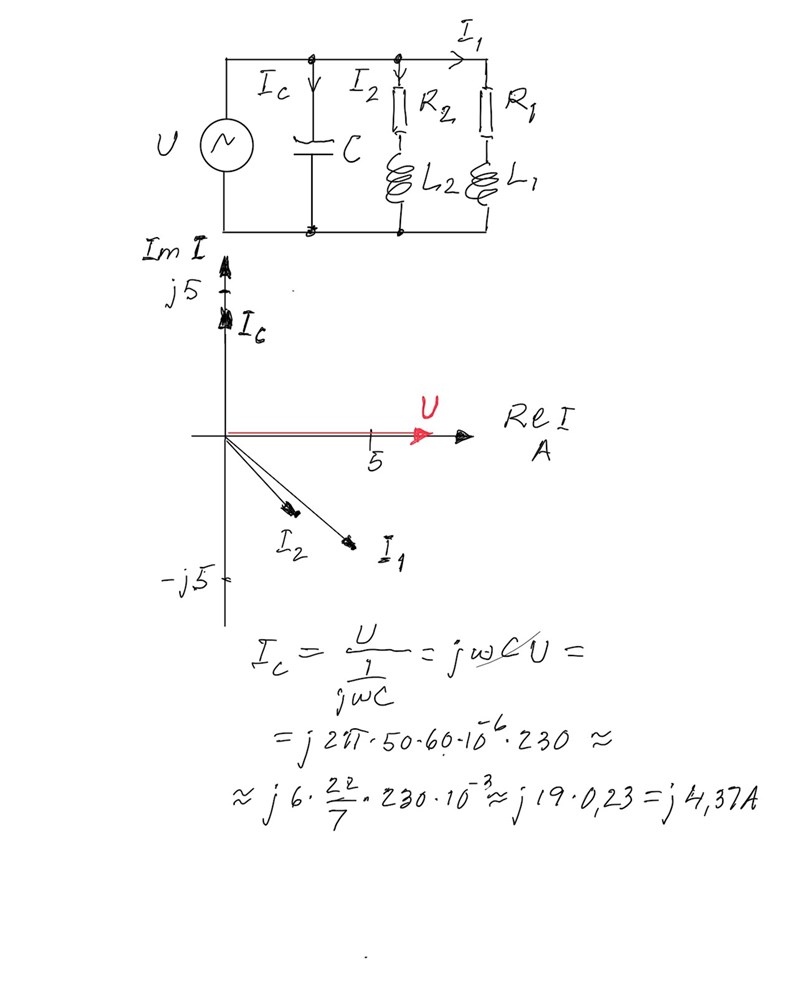 Ta gärna ett steg tillbaka och repetera hur strömmar och spänningar beter sig i kondensatorer och induktanser. Rita sedan upp kretsen plus visardiagram över hur strömmar och spänning fasmässigt förhåller sig till varandra.