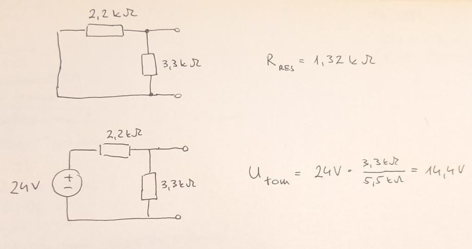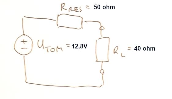 Ulast = Utom * Rlast / (RRES + Rlast) = 12,8V * 40 ohm / 90 ohm = 5,69V