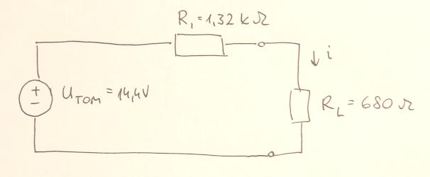 I = Utom / (RRES + Rlast) = 14,4V /(1,32 kohm + 680 ohm) = 7,2 mA