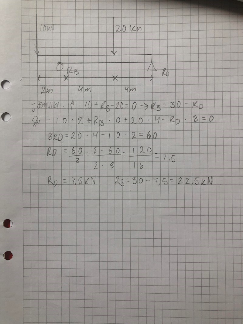 Hej! Jag behöver hjälp för att rita tvärkraft och momentdiagram, har jag gjort något fel?