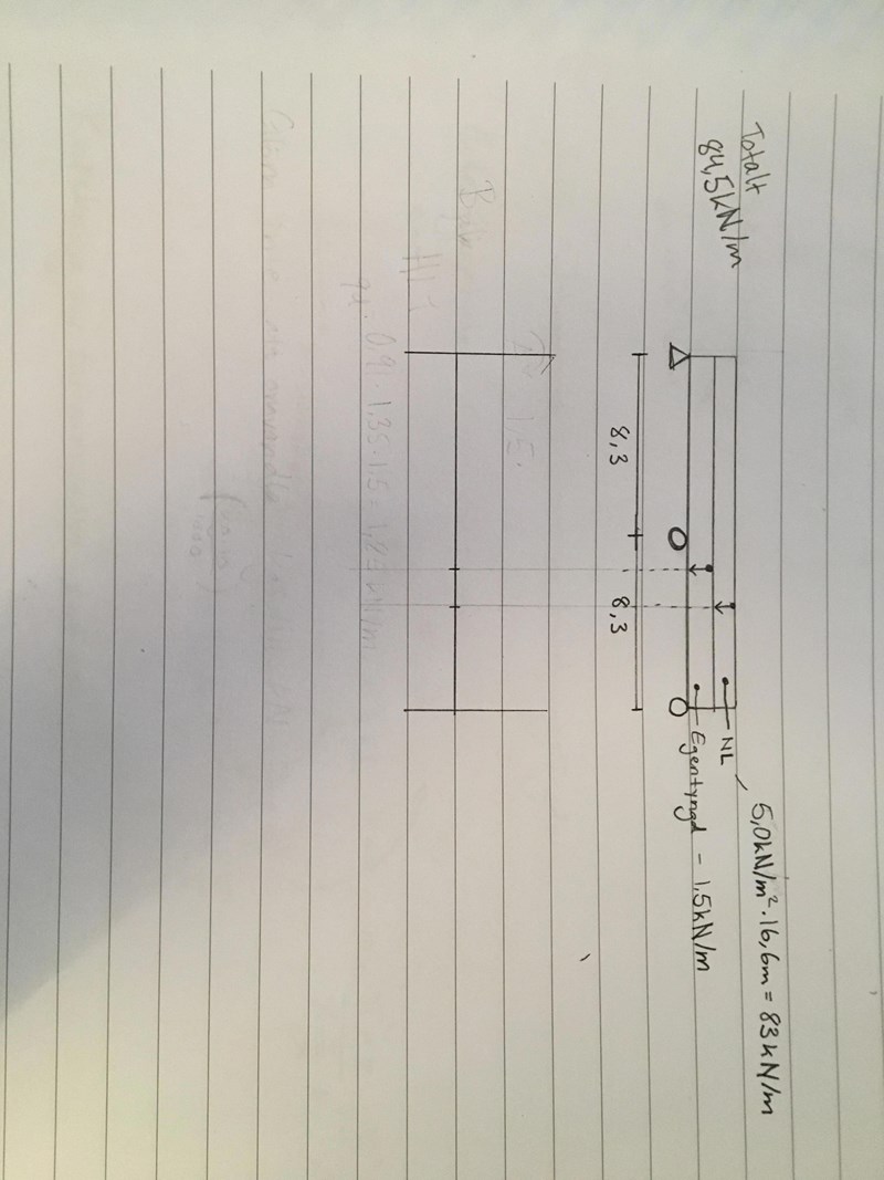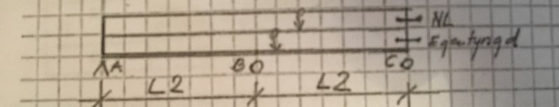 Behöver hjälp med att förstå hur jag ska ta mig till då krafterna inte exakt ligger på 8,3m. Jag tänker direkt att jag måste implementera tvärkrafts-diagram. Eftersom det är 3 stöd så gäller det enligt formeln A= 0,375 B= -0,125 (1,250) C= 0,375.
