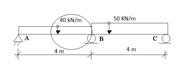 Tvärkraftsarmera balken i markerat område till vänster om stöd B om stödmomentet MB=90.7 kNm.