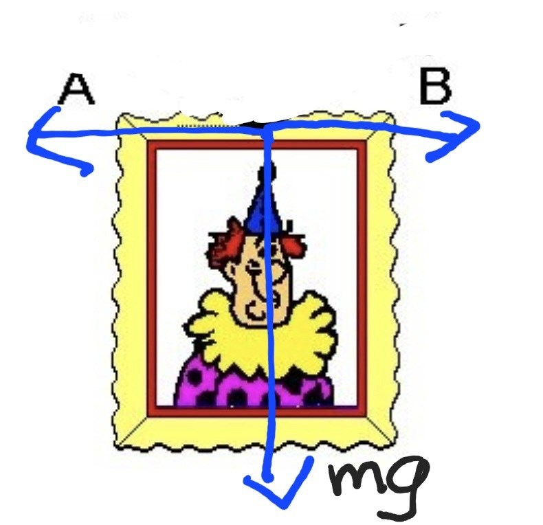 Om A och B vore helt horisontella (vågräta) enligt bifogad bild så skulle aldrig jämvikt kunna uppnås.