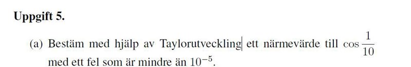 tylorutveckling ett närmevärde till cos 1/10