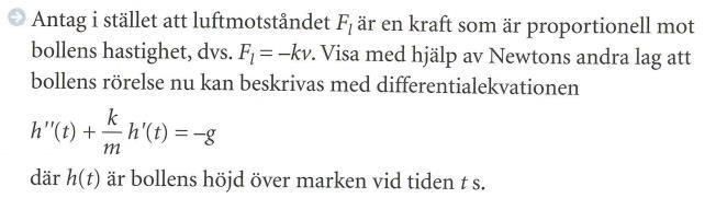 -kv = -kh'(t) beskriver ju luftmotstånd. h''(t) = -kh'(t)-g med luftmotstånd. Men var kommer m:et ifrån?!?