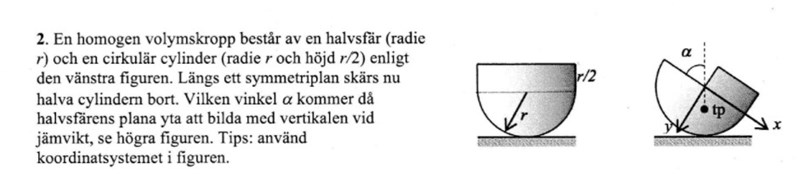 Laguna skrev:Om det är tyngdpunkten för en halvcirkel du beräknar så blir det fel, för tyngdpunkten för ett halvklot ligger på ett annat ställe.
