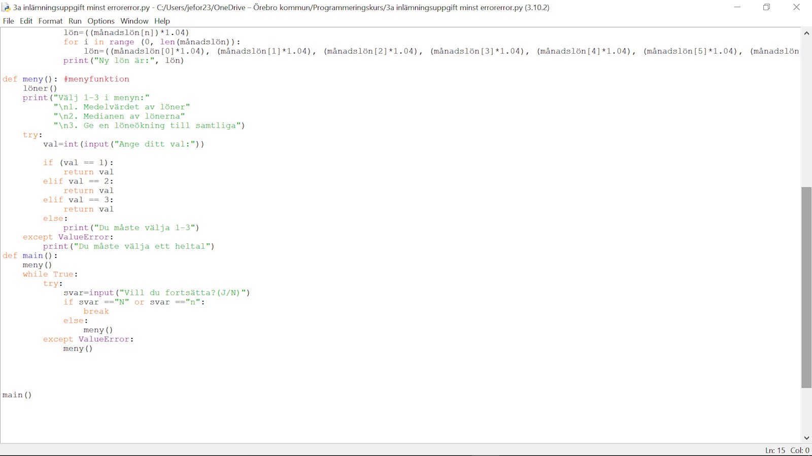 Jag har jobbat endel och nu ser det ut såhär, å den gr allt förutom att räkna ut medelvärde, median och ny_lön, så jag är tacksam för mer hjälp :)
