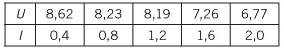 Mätvärdena i tabellen bör följa sambandet U=E−Ri⋅I