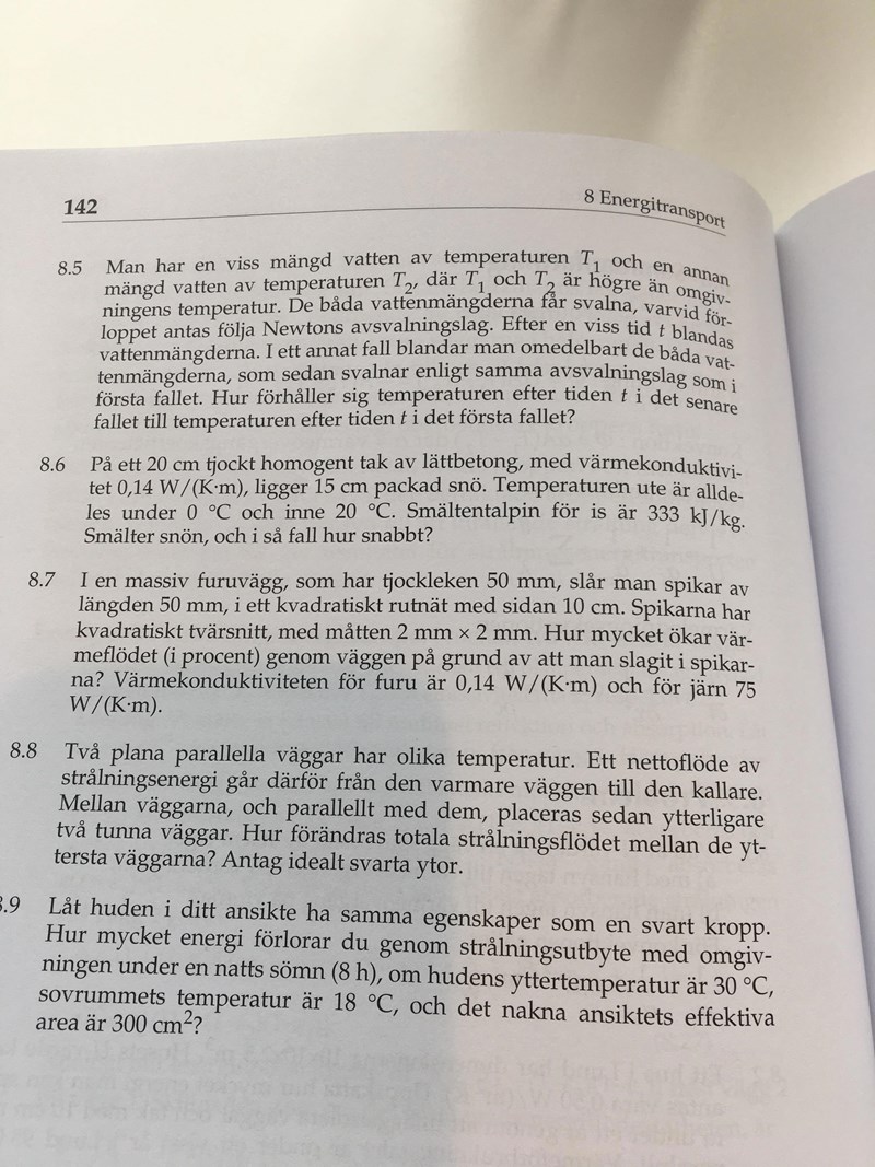 Hej! På uppgift 8.7 man ska ta reda på värmeflödet i procent! Jag har hittat U-värde å sen skulle använda mig formeln: Q = A*U*delta T