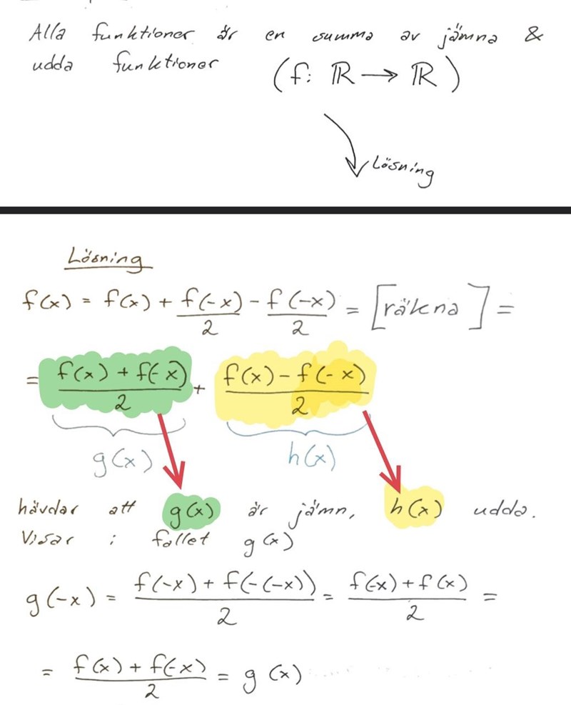 Jag har en fråga till om samma område. Jag förstår inte riktigt vad som står här. Om ena termen är udda och andra termen är jämn vad blir f(x).