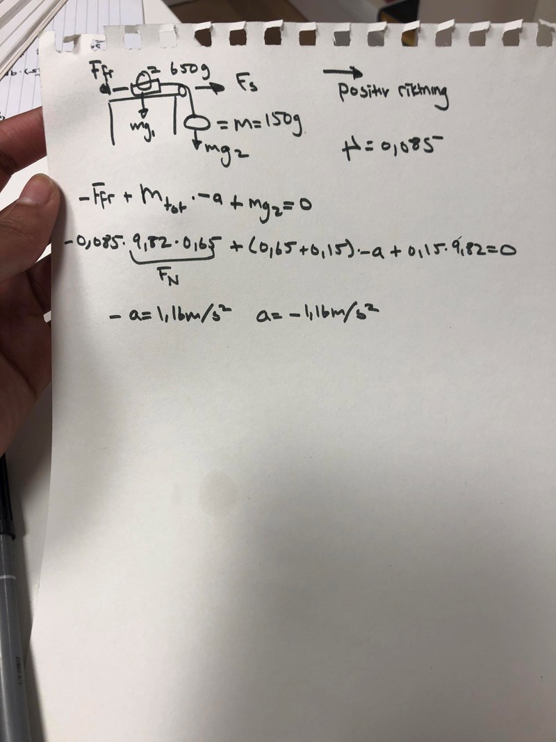 Sen har du ett teckenfel på a, massorna kommer börja röra sig åt höger och nedåt. Men du har rätt ekvation så du slarvade nog bara i sista steget.