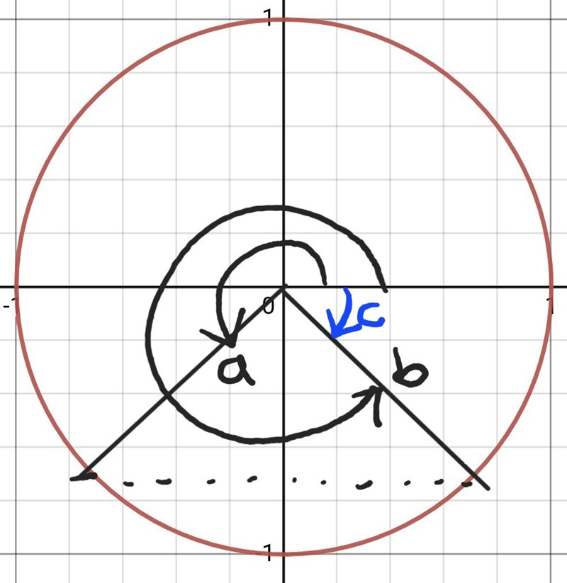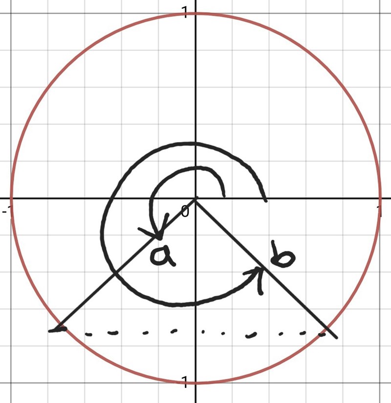 Okej jag ser ej hur a ligger mellan pi och 3pi/2 och att b ligger mellan 3pi/2 och 2pi i figuren.