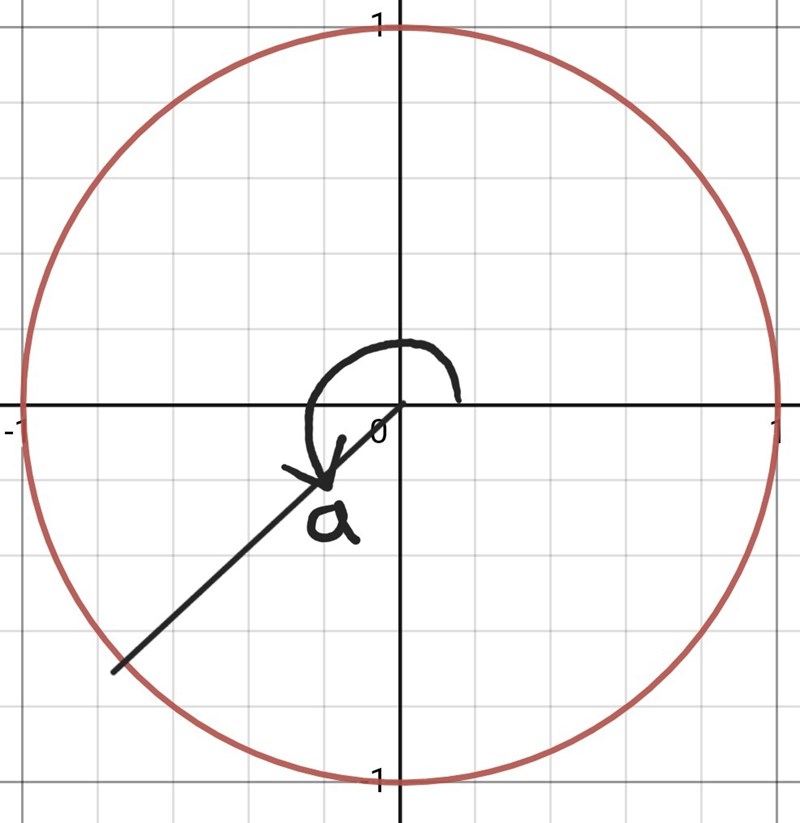 - att det betyder att a ligger mellan pi och 3pi/2 radianer?