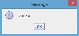 Om heltalet k börjar med värdet 0, och varje cykel genom while-satsen adderas 2 till k så länge som k < 6, borde då inte första cykeln ge att k = 2, nästa cykel k = 4, nästa k = 6 och sedan bryts cykeln och dialogrutan visas? Var kommer 024 in i bilden, och framför allt, varför blir det en nolla framför 24?