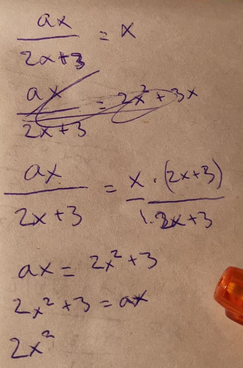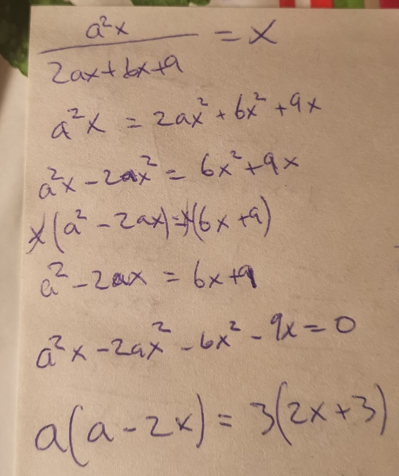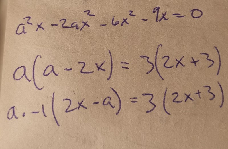Och när jag faktoriserade båda sidor, så hade det också räckt för att se vad a skulle bli... a(a-2x)=3(2x+3)