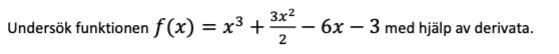 Undersök funktionenđ(đ„)=đ„3+3đ„22â6đ„â3med hjĂ€lp av derivata.