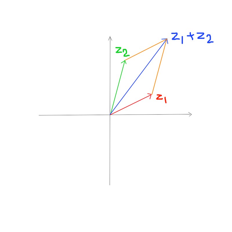 Detta löses enklare med paralellogramdefinitionen av additionen där sidorna på parallellogrammet är talen och diagonalen deras summa.