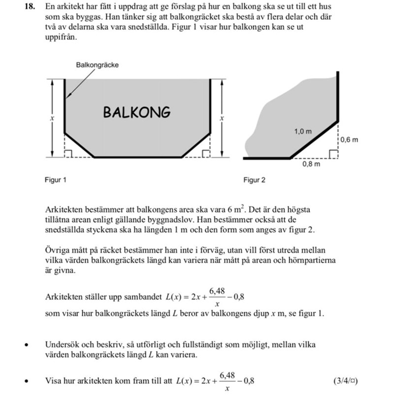 Börja med att lista ut hur arkitekten kom fram till formeln för räckets längd = L
