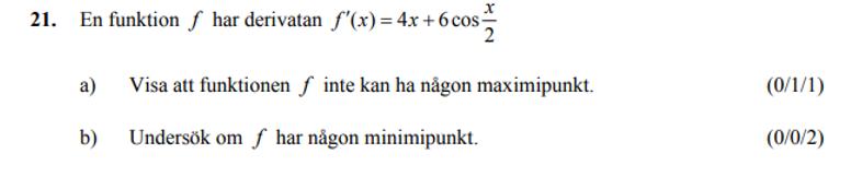 Alltså finns bara en minimipunkt. (Egentligen frågar de bara efter om vi har någon minimipunkt)