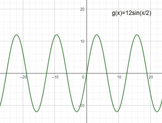 Konstanten C påverkar inte grafens form utan förskjuter bara grafen i y-led. Termen kan max bli 12 och minst bli -12, eftersom .
