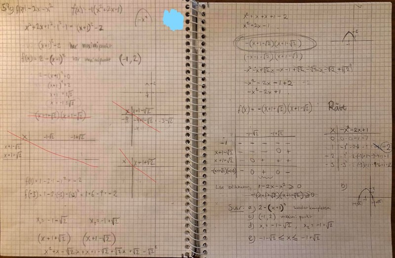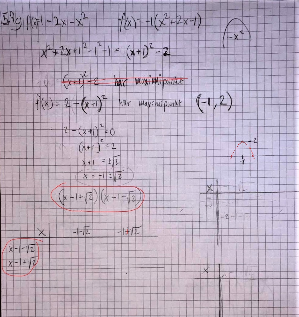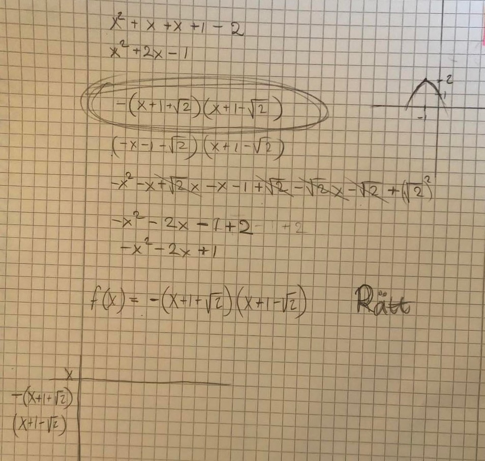 Hej, undrar hur jag ska skriva detta i teckenschemat eller rättare sagt hur skriver jag det i faktoriserad form om jag får att nollställena är x=-1±2.