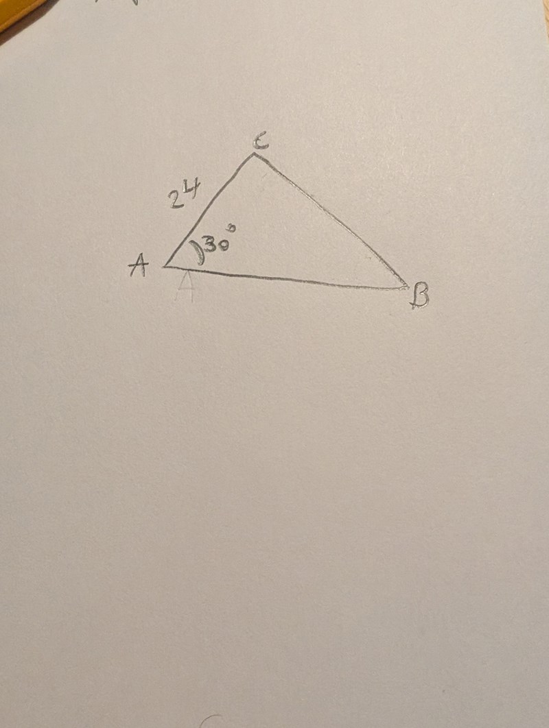 Om längden är större än 24 blir det bara en triangel eftersom sträckan bara kan dras åt ena hållet, åt andra så går den då förbi AC och vinkeln 30° skulle inte hålla.