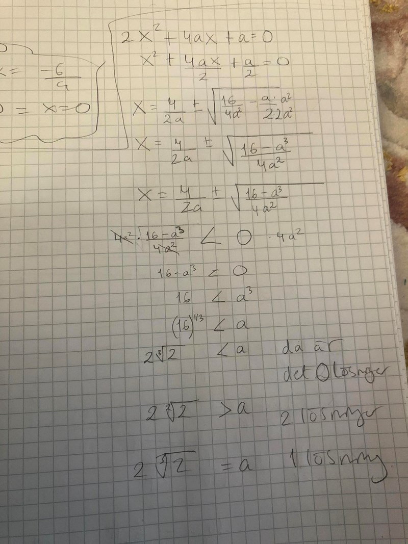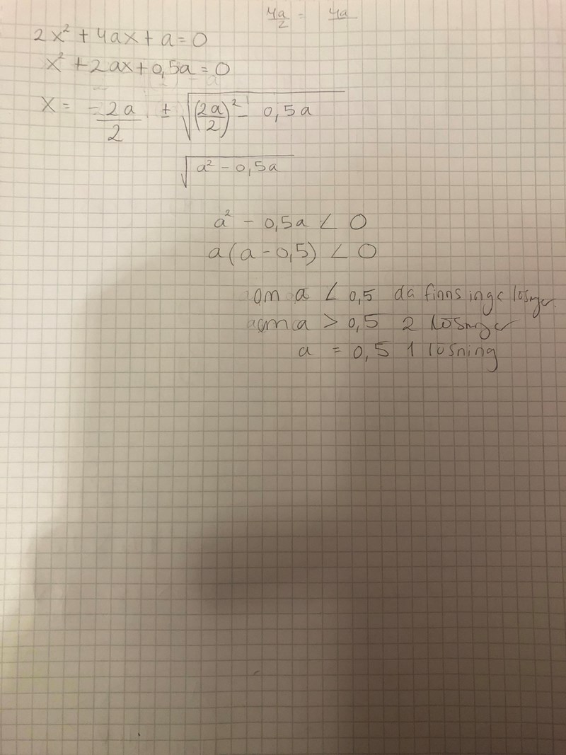 Ekvationen är 2x2+4ax+a=02x^2+4ax+a=0