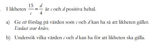 Undersök vilka värden c och d kan ha för att likheten ska gälla. b)