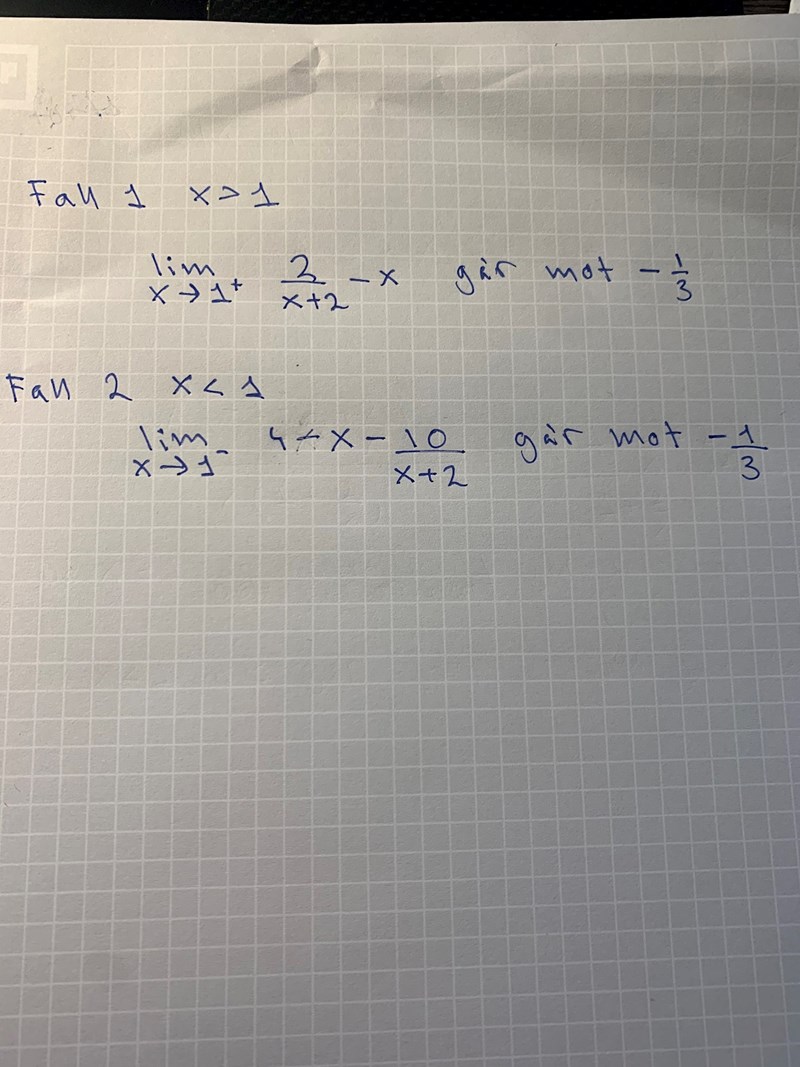 Och tack för rättningen! Är bara mina anteckningar, men rätt ska vara rätt! :) Men kvarstår fortfarande hur jag ska tolka att mina gränsvärden går mot -1/3.