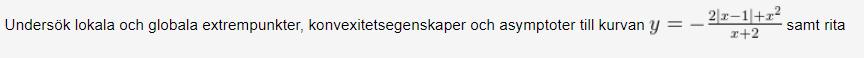 Undersöka en funktion, extrempunkter, konvexitetsegenskaper och asymptoter.